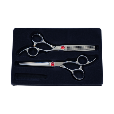 B&B Saksesæt a 2 stk. er udviklet af erfarne hundefrisører og egner sig både til professionelle og private brugere. Sættet består af en almindelig klippesaks og en effilersaks, begge i 6" (15,24 cm), hvilket giver god kontrol og præcision. Saksene er fremstillet i førsteklasses stål, som sikrer langvarig skarphed og holdbarhed. Takket være materialets kvalitet tåler saksene gentagne slibninger uden at miste ydeevne. Dette gør dem til et pålideligt valg til både rutinerede og nye brugere.