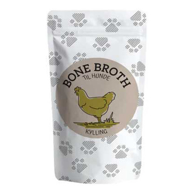 Bone Broth er en slags suppe der er kogt på ben og knogler fra dyr, og er et ideelt fodertilskud til alle hunde. Suppen er rig på mineraler med antiinflammatorisk effekt. Desuden er Bone Broth udelukkende lavet på økologiske råvare, som der er kræset for i over 72 timer. Hver Bone Broth er pakket i en smart håndterbar emballage, som man direkte hælder fra.