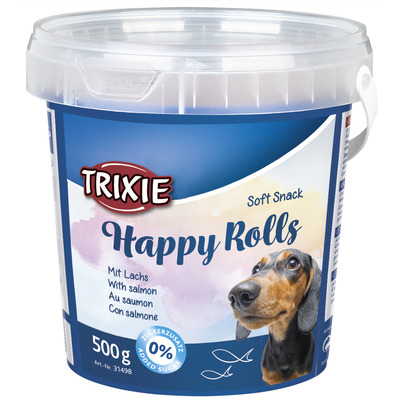 Hvis du gerne vil give din hund nye og spændende godbidder, er Happy Rolls fra Trixie en absolut must-have i hjemmet! Disse godbidder er lavet som ruller i en passende størrelse. De har en skøn smag af laks, som de fleste hunde vil nyde. Godbidderne i Happy Rolls har desuden en særlig, blød konsistens, hvorfor de er nemmere for din hund at indtage.