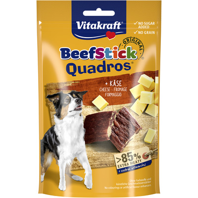 Vitakraft Beef-Stick Quadros med ost er kødfulde og delikate snacks til hunde