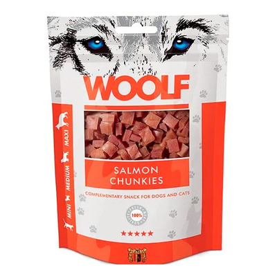 Disse godbidder er fremstillet af 100% proteinkilder, sikrer højeste kvalitet og optimal ernæringsmæssig indtag. Som med alle Woolf snacks, er Salmon Chunkies 100% naturlige, og de er fremstillet uden tilsætning af kunstige stoffer, konserveringsmidler eller farvestoffer, hvilket gør dem til et sundt valg for din hund. Velegnet til alle hundestørrelser, hvalpe over 3 måneder og endda katte.