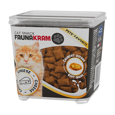 Faunakram godbidder til kat m. ost & kylling er en lækker snack til din kat med knasende skal og blød kerne