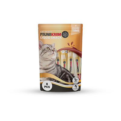 Faunakram har designet disse snacks i samarbejde med dyrlæger og ernæringseksperter for at sikre høj kvalitet. Hver pakke indeholder 8 individuelle portioner, som er ideelle til en lille forkælelse i hverdagen. Perfekt til at styrke båndet mellem dig og din kat!