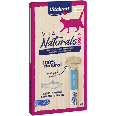 Vitakraft Vita Naturals Liquid Snack med laks er en naturlig og smagfuld snack til katte