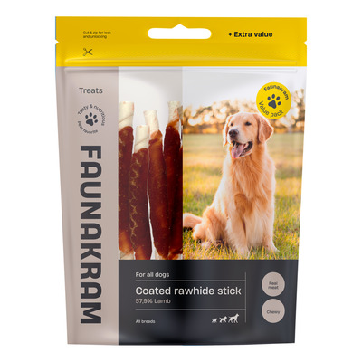 Faunakram tyggepinde m. lam er en velsmagende snack til hunde, der både underholder og plejer tænderne