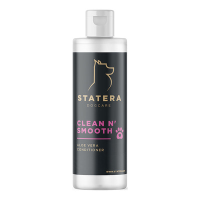 Statera Clean n’ Smooth Conditioner er en plejende balsam, der anvendes efter vask med shampoo hos både hunde og katte. Den indeholder aloe vera fra Aloe Barbadensis-planten, som fugter og understøtter genopbygning af hud og pels. Balsammen lukker pelsstråene og gør pelsen mere modstandsdygtig overfor snavs, vind og vejr. Enzymaktivitet bidrager til at opløse døde hudceller og fremmer hudens naturlige balance.