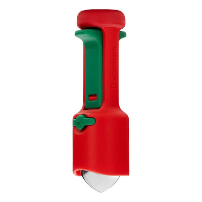 Dreamfarm Hullapit er et kompakt frugtredskab, der kombinerer tre funktioner i ét: fjernelse af jordbærstilke og tomatstokke, udtræk af ananasøjne samt udstening af kirsebær og oliven. Bladene i rustfrit stål er kegleformet tilspidsede, så de fjerner bitre jordbærskerner og frugtskavanker med minimalt spild. Redskabet er udformet med et fjederbelastet stempel, der arbejder i én glidende bevægelse.