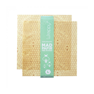 Wrappy madpapir med bivoks er et praktisk og genanvendeligt alternativ til engangsprodukter som for eksempel husholdningsfilm og stanniol/alufolie. Det består af økologisk, GOTS-certificeret bomuld beklædt med en blanding af ren, filtreret bivoks, harpiks og økologisk jojobaolie. Et nemt og bæredygtigt hverdagsbyt.