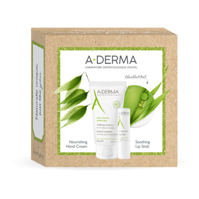 A-Derma Hand & Lip Gaveæske indeholder både en håndcreme og en læbepomade, som beskytter tør hud