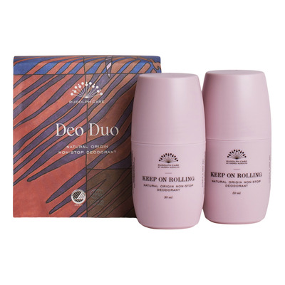 Rudolph Care Keep On Rolling Deodorant Duo er en pakke med to roll-on deodoranter, som beskytter effektivt mod lugt samtidig med, at huden plejes skånsomt. Deodoranten indeholder naturlige og økologisk certificerede ingredienser som aloe vera, kamille og sheasmør, der virker beroligende og fugtgivende. Produktet er uden alkohol, og aluminium, hvilket gør den velegnet til sensitiv hud. Den har en mild og ren duft, som ikke virker overdøvende.