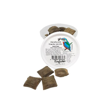 Stærke lakridsbolcher med et natuligt indhold af sukker der stammer fra lakridspulver.