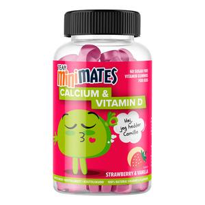 Team MiniMates Calcium & Vitamin D er velsmagende vitamin-gummies med jordbær og vanilje. Hver gummy indeholder 100 mg calcium og 5 µg vitamin D. Ved indtag af 2 gummies opnås 25% af dagligt referenceindtag af calcium og 200% af vitamin D. Kosttilskuddet er udviklet specielt til børn og indeholder ingen sukker, kunstige farver eller kunstige smagsstoffer. Gummies er en god løsning for børn, der har svært ved at synke tabletter.