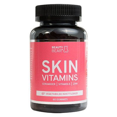 Beauty Bear Skin Vitamins er små vitamingummies med den skønneste smag af hindbær, som gør det til en fornøjelse at spise sit daglige kosttilskud. De er formet som søde bjørne, og emballagen har desuden et smart, børnesikret låg. Beauty Bear Skin Vitamins indeholder zink og vitamin A, som bidrager til at vedligeholde en normal hud. Derudover indeholder kosttilskuddet bl.a. ceramideolie, biotin og garantæble ekstrakt.