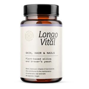 Longo Vital Daily Essentials Skin & Nails er et vegansk kosttilskud til hud, hår og negle