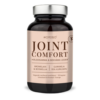 NORDBO Joint Comfort er et kosttilskud med et tripelkompleks bestående af gurkemeje, boswellia og bromelain. Gurkemejeekstrakten har et naturligt indhold af 95% curcuminoider, og boswellia stammer fra det indiske røgelsestræ. Bromelain er et enzym udvundet af ananas. Ingredienserne anvendes ofte i kosttilskud rettet mod personer med en aktiv livsstil.
