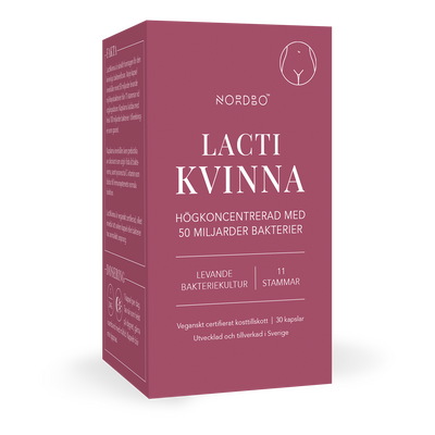 NORDBO LactiKvinde er et højkoncentreret mælkesyrebakterieprodukt med et bredt udvalg af stammer. Hver kapsel indeholder garanteret 50 milliarder bakterier (ved udløb) fordelt på 11 stammer. Produktet er formuleret til kvinder, som oplever ubalancer både i tarmen, vaginalt samt i urinvejene og indeholder derfor hele 90% Lactobacillus bakterier.