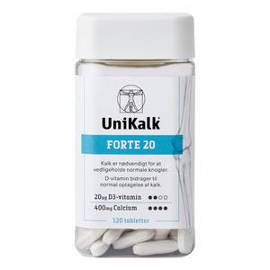 UniKalk Forte 20 indeholder både calcium og D-vitamin. Behovet for et ekstra højt tilskud af D-vitamin kan opstå af flere årsager. Hvis man er mere end 60 år, er behovet for at indtage et ekstra tilskud af D-vitamin meget større. Dette er gældende for begge køn. Ligeledes kan det med alderen knibe med at komme ud i solen eller spise de samme mængder mad som tidligere - derfor kan det være godt for dig at begynde på UniKalk Forte.