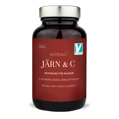 NORDBO Jern & C er et vegansk jerntilskud med hele 20 mg jern og 100 mg C-vitamin pr. daglig dosis. Mange har glæde af et jerntilskud, det gælder f.eks. gravide og personer, der donerer blod. Jern bidrager bl.a. til dannelsen af røde blodlegemer, til reduceret træthed og udmattelse samt til immunsystemets normale funktion. C-vitamin er tilsat for at optimere jernoptagelsen, da vitamin C øger optagelsen af jern.