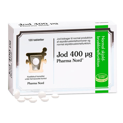 Jod 400 µg er et kosttilskud, der bidrager til normal skjoldbruskkirtelfunktion og indgår i det normale energistofskifte. Indholdet af jod i dette kosttilskud hjælper til at vedligeholde normal hud og understøtter dannelsen af skjoldbruskkirtelhormoner, som er vigtige for kognitiv funktion og nervesystemets normale funktion. Jod 400 µg er velegnet til både vegetarer og veganere og fremstilles under farmaceutisk kontrol, hvilket sikrer kvalitet og sikkerhed. Jod er et essentielt sporstof, der primært findes i havbaserede fødevarer som fisk og tang. Dette supplement er en pålidelig kilde til jod, især i områder med lav naturlig jodforekomst.