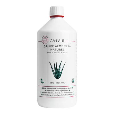 Avivir Drikke Aloe Vera findes også lige her i en 500 ml flaske og i en variant med 1000 ml tilsat æblekoncentrat lige her.