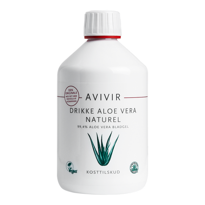 Avivir Drikke Aloe Vera findes også lige her i en 1000 ml flaske og i en variant med 1000 ml tilsat æblekoncentrat lige her.