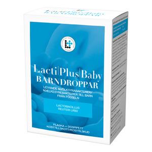 LactiPlus Baby Børnedråber indeholder 100 millioner levende mælkesyrebakterier (Lactobacillus reuteri LR92) pr. daglig dosis. Dette kosttilskud er specielt udviklet til spædbørn og kan anvendes fra fødslen. Den patenterede skruelågsbeholder gør det nemt og hygiejnisk at dosere dråberne. Stammen LR92 er en af de mest undersøgte probiotiske bakteriestammer til spædbørn og udvalgt med fokus på den følsomme tarmflora hos små børn.