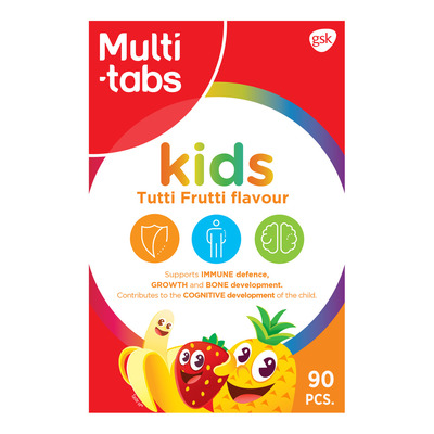 Multi-Tabs Kids Tutti Frutti er et dagligt kosttilskud i tygbar tabletform, udviklet til børn. Tabletten har en mild, børnevenlig smag og er let at indtage. Den indeholder blandt andet vitamin D, som bidrager til barnets normale vækst, samt jern, der bidrager til en normal kognitiv udvikling.
