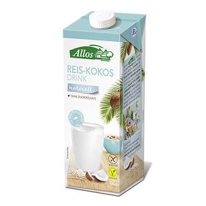 Allos Ris-Kokos Drink - Ustyrlig lækker plantedrik med den fineste smag af kokos. Yderst velegnet til bagning, smoothies og til at hælde over morgenmaden.