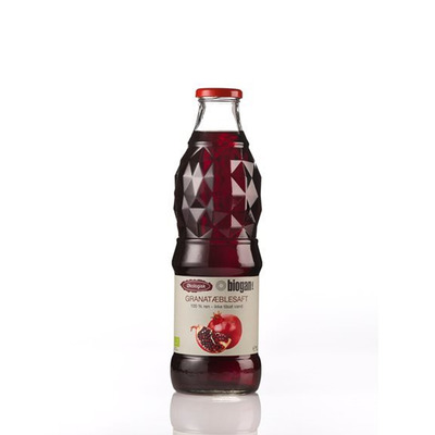 Økologisk granatæblesaft der er presset af friske og økologiske frugter uden tilsætning af nogle koncentrater.
