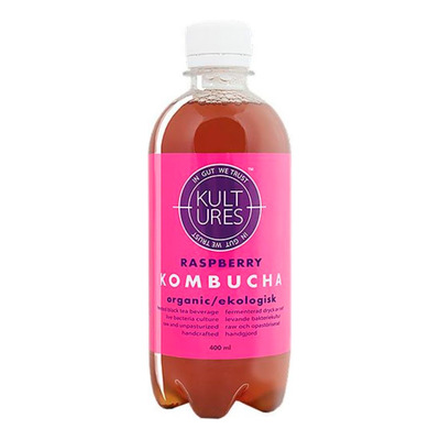 Kultures Kombucha Raspberry er en økologisk og håndlavet kombucha baseret på fermenteret sort te. Den naturlige smag af hindbær giver en sød og frisk smagsoplevelse. Kombuchaen fremstilles i små partier og er ufiltreret, hvilket betyder, at små synlige elementer af kombuchakulturen kan forekomme. Den naturlige fermentering sikrer variation i både smag og kulsyreindhold, hvilket gør hver flaske unik.