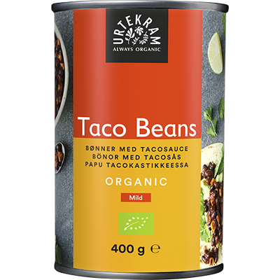 Elsker du mexicansk mad? Så kan disse økologiske taco bønner fra Urtekram give dig en smagsoplevelse, der vil få smagsløgene til at danse af glæde. Urtekrams Taco Bønner består af borlotti bønner lagt i en virkelig skøn, krydret sauce, der smager som en klassisk taco. Bønnerne er klar til brug direkte fra beholderen, og er særligt lækre som del af lækre tacos eller som smagsrigt tilbehør til pasta.
