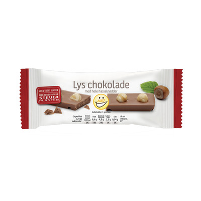Lækker lys chokolade med ristede hasselnødder.