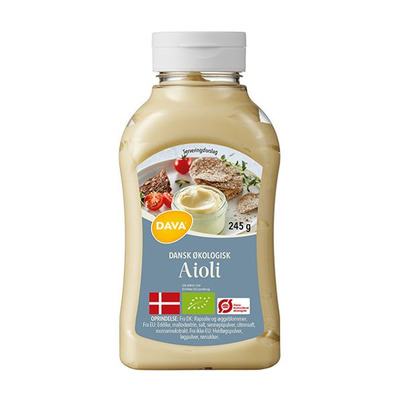 DAVA Aioli Ø er en cremet og smagfuld økologisk hvidløgsmayonnaise, fremstillet med danske æggeblommer og dansk rapsolie. Aiolien har en lækker, balanceret smag og en blød konsistens, der gør den ideel som tilbehør til mange retter. Aiolien er produceret med fokus på kvalitet og økologi, så du kan nyde et produkt, der er godt for både smagsløg og miljø.