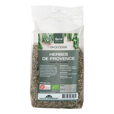 Natur-Drogeriets økologisk udgave af det klassiske blandingskrydderi, Herbes de Provence. Blandingen består af tørrede urter, der er typiske for den skønne Provence-region i Sydøst-Frankrig, hvorfra blandingen kommer. Produktet kan bruges i et utal af retter i køkkenet, og indeholder velkendte krydderier såsom oregano, basilikum, fennikel, rosmarin, timian og andet. Urterne er økologisk dyrket, for at sikrer et produkt af højeste kvalitet.