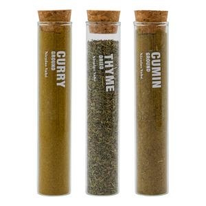 Nicolas Vahé Spices Curry, Thyme, Cumin egner sig til alt fra simreretter og grøntsagsretter til kød, marinader og globalt inspirerede retter. De tre krydderier leveres i elegante glasrør med korkprop, som både pynter og gør dem nemme at anvende i madlavningen.