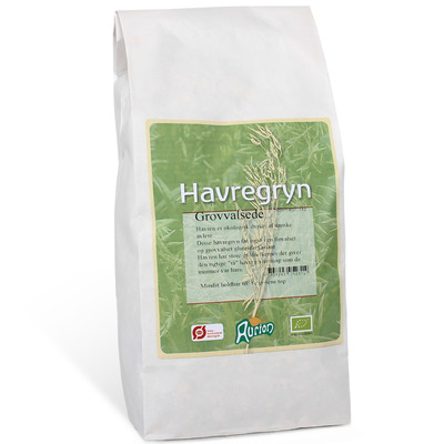 Denne variant af grovvalsede havregryn fra Aurion er glutenfri. Havreflagerne er af demeter kvalitet.