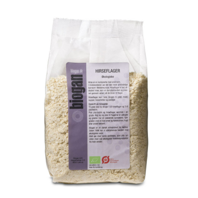 Hirse er en kornplante, som man har brugt i madlavning siden oldtiden. Disse Biogan Hirseflager er lavet af hel og afskallet hirse, som er blevet dampbehandlet og har været igennem en valse for at blive til tynde flager. Man kan bruge hirseflager i alle slags måltider, både morgen, middag og aften. Biogans økologiske hirseflager er velegnet i en cremet grød, lækker suppe eller i en sprød müsli.