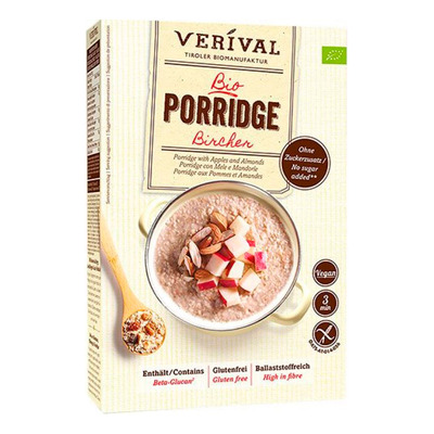 Verival Grød Bircher er en økologisk grødblanding inspireret af den klassiske Bircher-opskrift. Den er baseret på glutenfri havre og tilsat tørrede æblestykker og mandler, som giver en mild og naturlig smag. Grøden er nem at tilberede og kan både nydes varm eller som overnight oats. Den indeholder betaglukaner og fibre, som gør den til en mættende og nærende start på dagen.