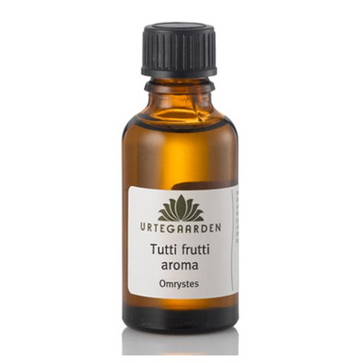Urtegaarden Tutti Frutti Aroma kan bruges til at give vingummier, bolsjer mm. en sød frugtsmag a la bubblegum.