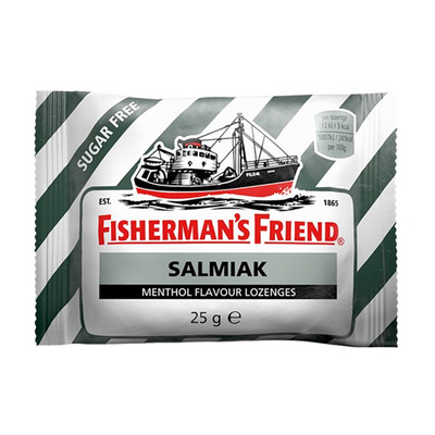 Fisherman's Friend - Salmiak har en frisk saltet lakridssmag - desuden virker den lindrende på øm hals.