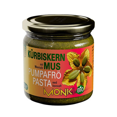 Det økologiske græskarkernesmør er lækkert på brød, kiks og riskiks. Det er normalt, at der dannes et lag af olie efter et stykke tid. Det blandes ved omrøring.
