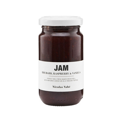 Dejlig, sød og frisk gourmet-marmelade fra Nicolas Vahé med rabarber, hindbær & vanilje