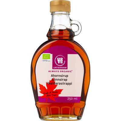 En lidt lysere, men alligevel blød og fyldig sirup med en snert af karamelsmag. Ahornsiruppen er velegnet til f.eks. desserter, grød, bagværk og pandekager.
