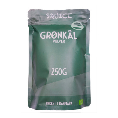 Squice Økologisk Grønkål Pulver er grønt pulver lavet af tørret og malet grønkål