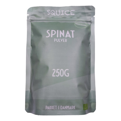 Squice Økologisk Spinat Pulver er lavet af tørret og finmalet økologisk spinat og indeholder udelukkende spinat uden tilsætningsstoffer. Pulveret er vegansk, naturligt grønt og nemt at bruge i både kolde og varme retter. Det har en mild smag og bevarer spinatens naturlige egenskaber. Produktet er pakket i Danmark og er velegnet til smoothies, grød, juice eller madlavning, hvor du ønsker at tilføre grønt på en enkel måde. Pulveret er 100% økologisk og nemt at dosere.