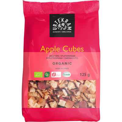 Urtekram Æbletern Ø er økologiske og velsmagende tørrede æbletern, der er perfekte som en sund snack eller til brug i bagning og madlavning. Disse æbletern er lavet af nøje udvalgte økologiske æbler, der er tørret nænsomt for at bevare deres naturlige sødme og smag. De er ideelle til at tilføje en frugtagtig smag til dine kager, brød og morgenmadsretter, eller nyd dem direkte fra posen som en sund og lækker snack. Med Urtekram Æbletern kan du være sikker på at få et produkt af høj kvalitet, der er fri for tilsætningsstoffer og pesticider.