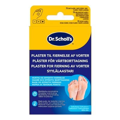 Scholl Wart & Verruca Removal Plasters er specialudviklede plastre til behandling af vorter og fodvorter. Plastrene har en indbygget pude, som indeholder salicylsyre - et aktivt stof, der gradvist nedbryder den hårde hud og bidrager til fjernelse af vorten. Puden er udformet til at fokusere behandlingen og samtidig beskytte den omkringliggende hud mod unødig påvirkning.