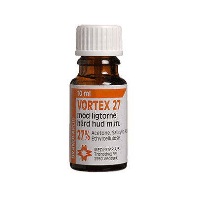Vortex 27 indeholder salicylsyre som opløser det yderste hudlag og ligtornen eller det hårde hud vil forsvinde gradvist.