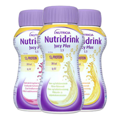 Nutridrink Jucy Plus er en ny, frisk ernæringsdrik fra Nutricia, der kombinerer frugtsmag med ernæringsmæssig støtte til personer med lav appetit eller øget behov for næring. Hver flaske på 200 ml indeholder 300 kcal og 8 g protein, samt C-vitamin, der bidrager til immunsystemets normale funktion og øger optagelsen af jern. Nutridrink Jucy Plus er glutenfri og har lavt laktoseindhold.