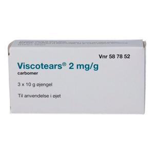 Viscotears 2care4 2 mg/g er et registreret håndkøbslægemiddel, der anvendes ved nedsat tåre- eller slimproduktion i øjet. Produktet indeholder carbomer, som virker ved at fugte og smøre øjet. Gelen hjælper med at lindre symptomer som tørhed og irritation i øjnene. Når gelen påføres, dannes en beskyttende hinde på øjets overflade, som kan give fugt i flere timer. Viscotears er beregnet til lokal anvendelse i øjet og bruges efter behov.